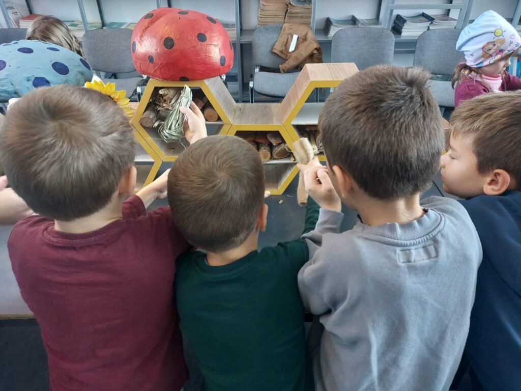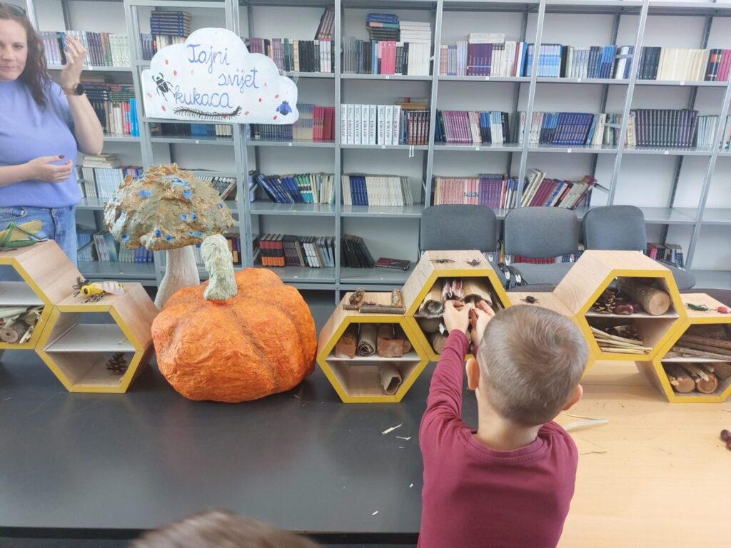 Posjetila nas je predškolska skupina Ljubičasta soba vrtića Sunčica u Osijeku. Mladi su polaznici sudjelovali na dvjema radionicama. U školskoj knjižnici upoznali su se s “Tajnim svijetom kukaca” gdje su gradili hotele za kukce s prof. Ostrički. Na radionici “Jesenska čarolija” s prof. Glavaš od lišća, sjemenki i plodova jeseni izrađivali su kolaže, jesenske slike i oblike. Posjetili su veterinarski praktikum s prof. Šveger i gledali pčelinja krila preko mikroskopa s prof. Baglamom.