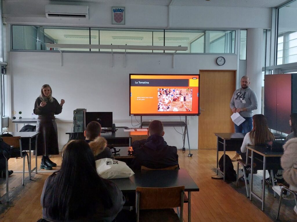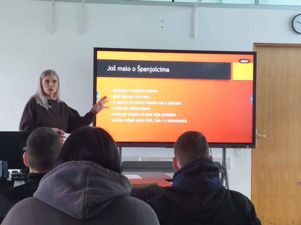 Profesori Verena Dagmar Kušenić i Marin Marić održali su kulturološke radionice u okviru programa Erasmus+ Ključna aktivnost 1 – Mobilnost u svrhu učenja za pojedince u okviru Akreditacije za strukovni odgoj i obrazovanje 2025-1-HR01-KA121-VET-000334020. Na radionicama je sudjelovalo 16 učenika VT i AT obrazovnog programa koji odlaze na mobilnost u Malagu u Španjolsku. Uključili su se i članovi tima za Akreditaciju koji su posjetili Malagu u prethodnom ciklusu, ravnatelj Ivan Aničić, koordinatorica Snježana Stivaničević i stručna suradnica Irena Ostrički.